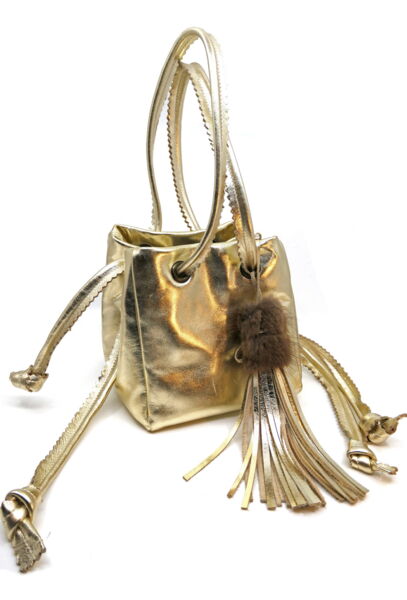 Tasche-Leder-Gold 21x21cm edle Tragetasche modern lässig Swiss made