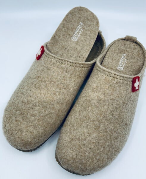 Hausschuhe zum Bequemen einschlüpfen, Farbe Sand, Wolle, warm und weich, rutschhemmende Sohlen