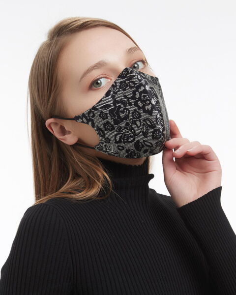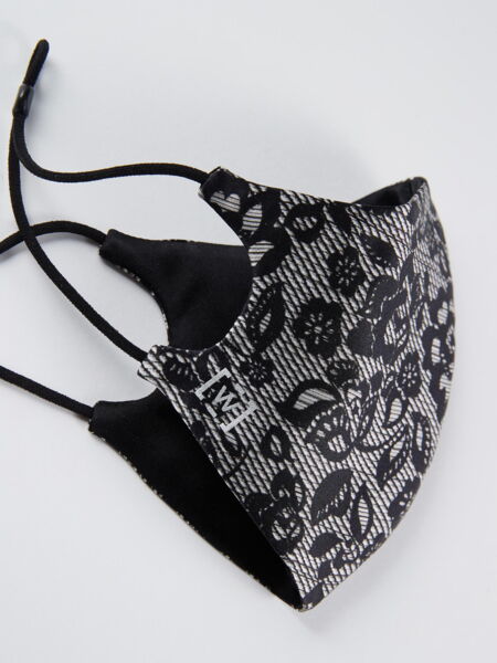 Diese Maske aus leichter Seide mit dezentem Spitzendesign bedeckt Mund und Nase auf sanfte Weise. Elastische, extradünne Bänder garantieren eine sichere Passform.